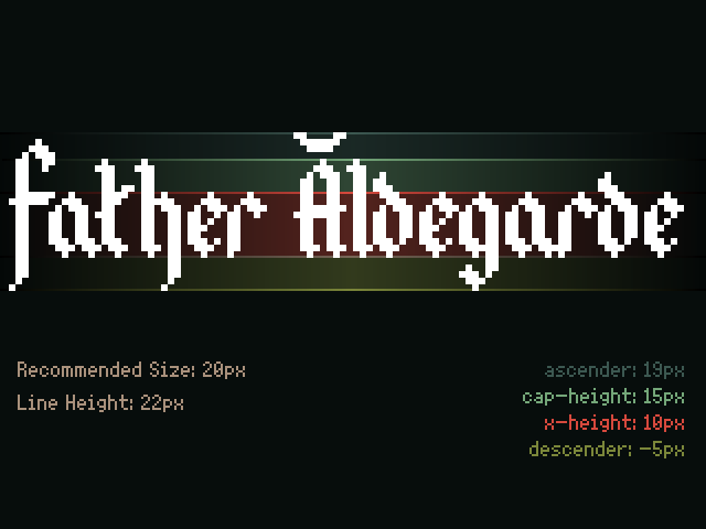 - This font renders correctly at 20pts/pxs.