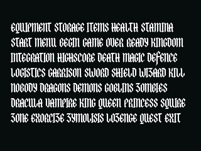 KINGDOM is a gothic, blackletter pixel font.