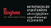 A new update for KINGDOM! At the time of posting, KINGDOM has made the milestone of 100 purchases in itch.io. Thank you to everyone who has bought this font! I hope it has been serving you well. KINGD...